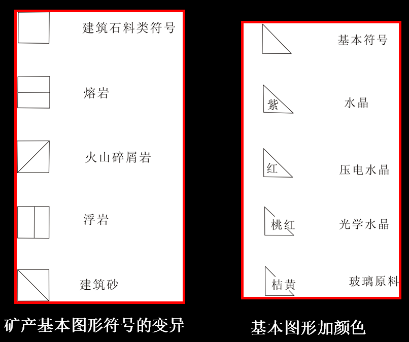 矿产符号可以表示矿产的种类及规模、成因类型、成矿时代等内容。
