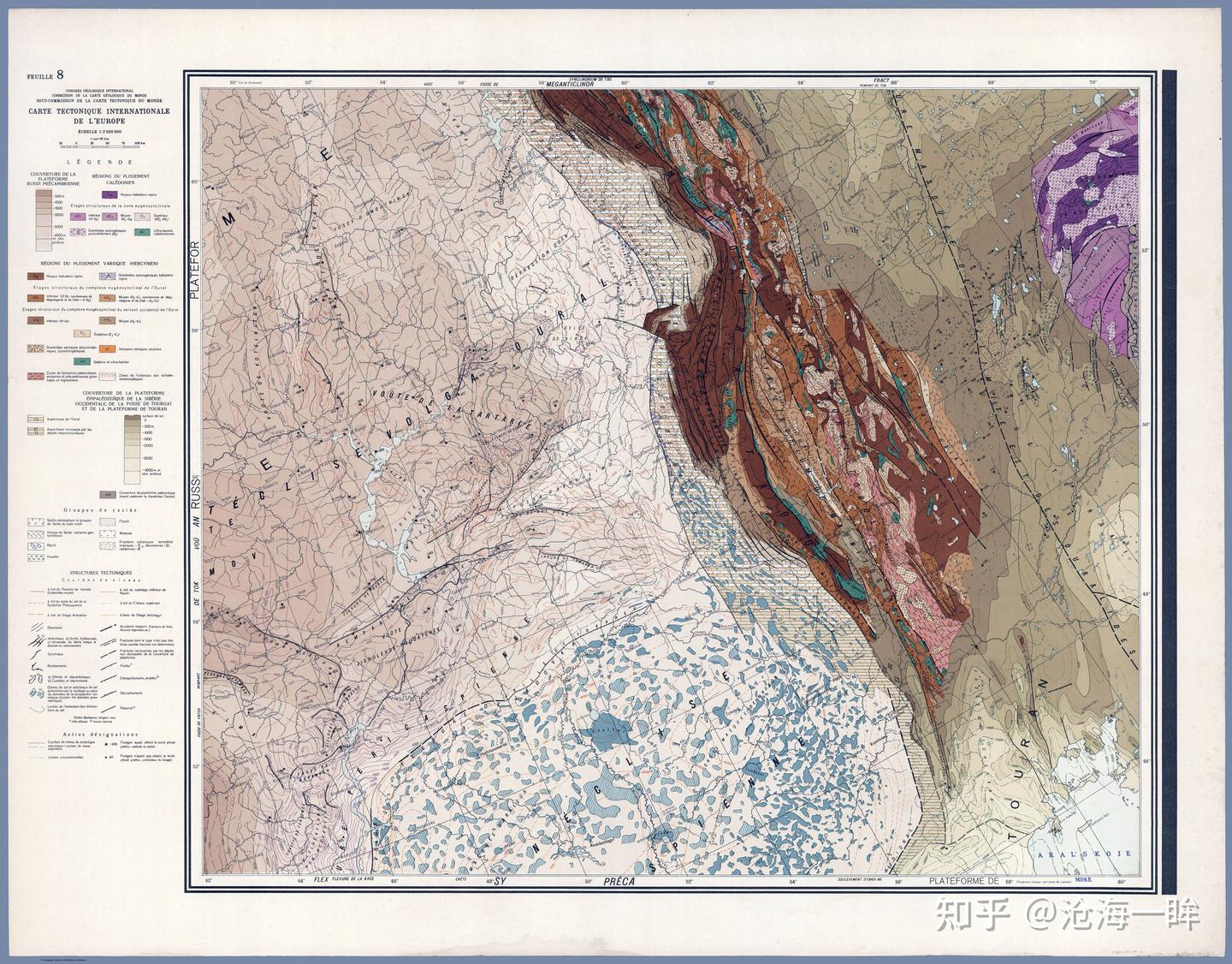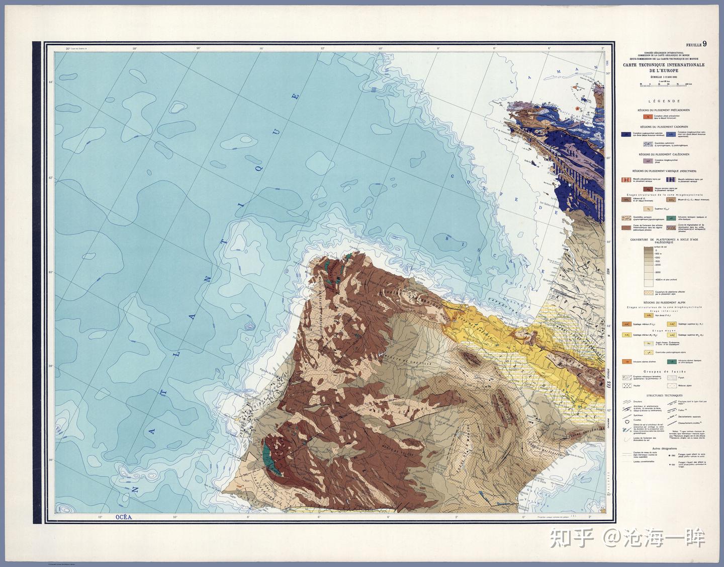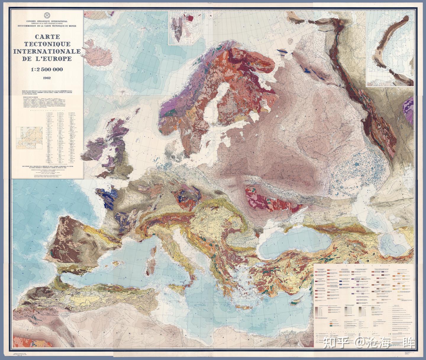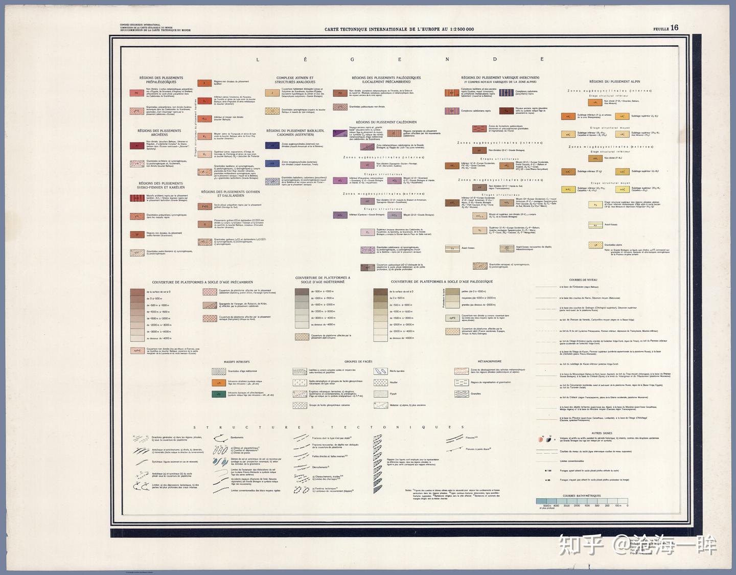 这些专家都是20世纪地质构造研究领域的权威人物,他们的主导让这张图具备了极高的专业性与国际认可度,是当时欧洲地质构造研究的集大成成果。图集系统展示欧洲板块边界、褶皱带、断裂带、岩浆活动区等构造单元,是地质学、地球物理学等学科研究欧洲地质演化、矿产资源勘探的重要参考资料,也具备一定历史文献价值。