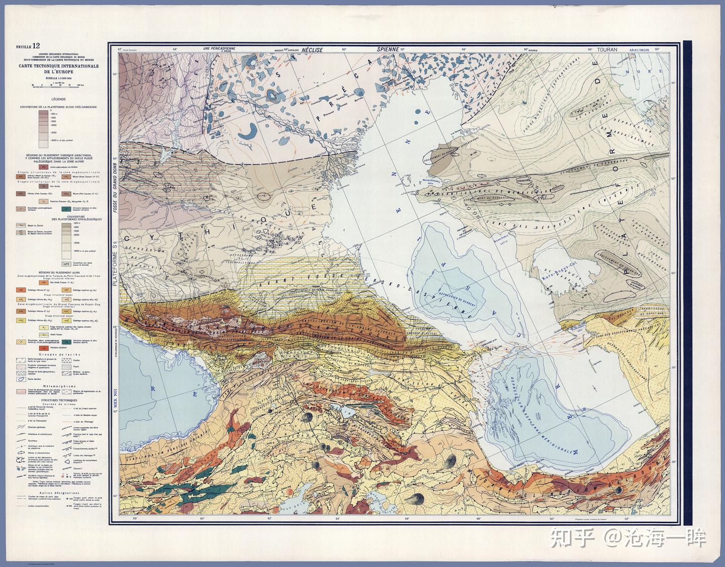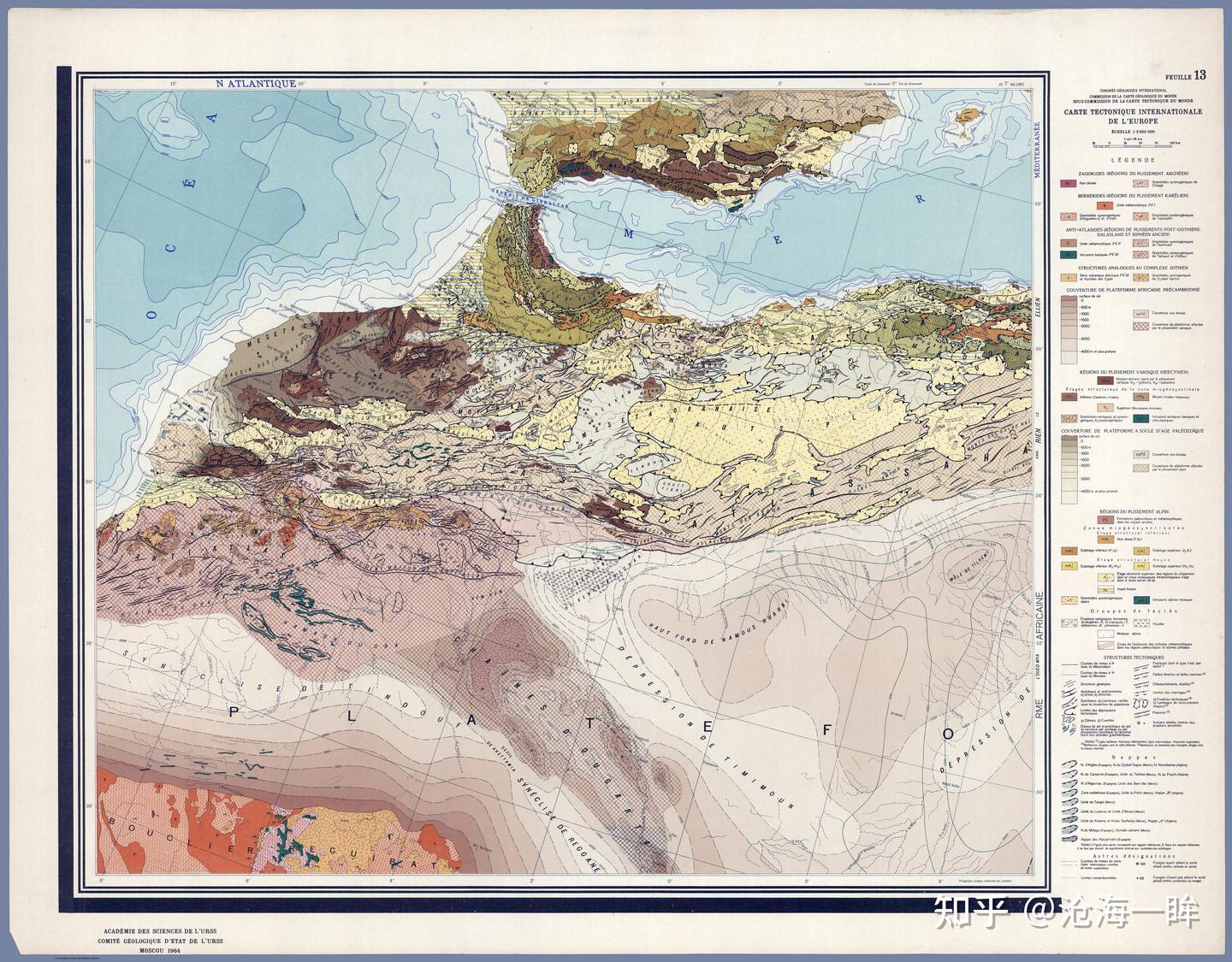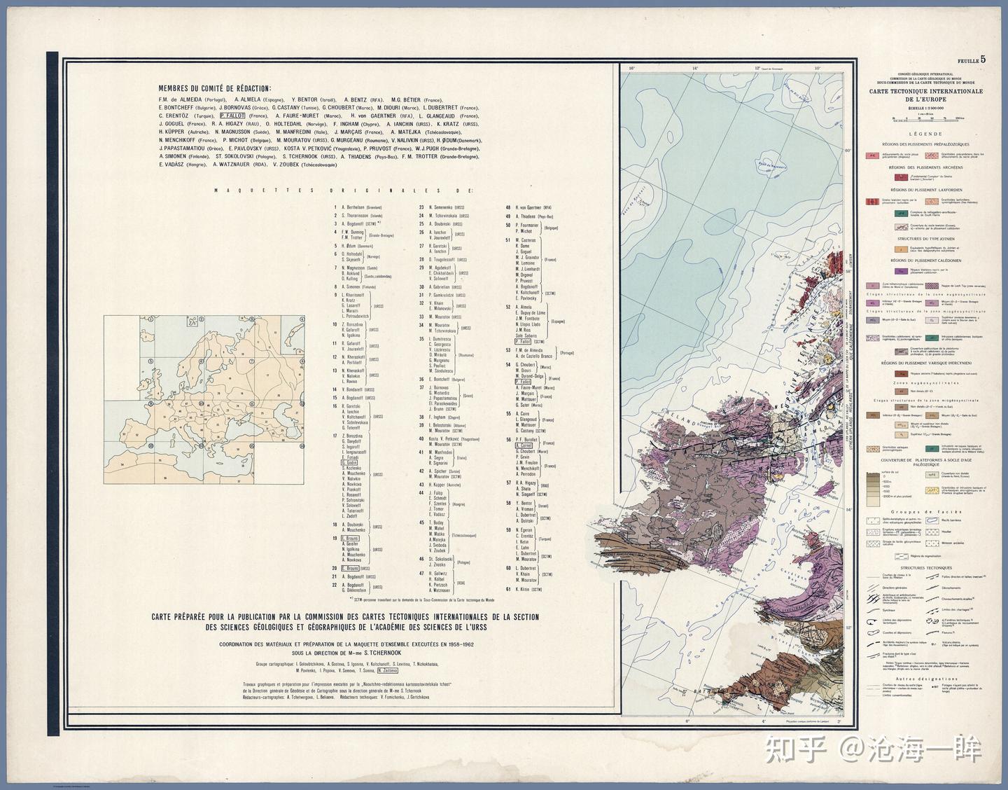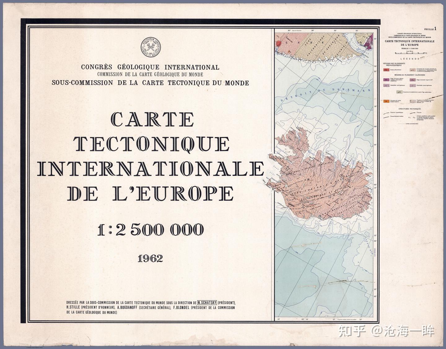 这些专家都是20世纪地质构造研究领域的权威人物,他们的主导让这张图具备了极高的专业性与国际认可度,是当时欧洲地质构造研究的集大成成果。图集系统展示欧洲板块边界、褶皱带、断裂带、岩浆活动区等构造单元,是地质学、地球物理学等学科研究欧洲地质演化、矿产资源勘探的重要参考资料,也具备一定历史文献价值。