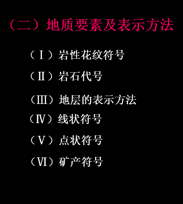 点状符号所表示的内容,主要是某一地点的地质现象和地质工作的内容。如化石采集地、露头观测点、废矿硐、露天采场、钻孔、探槽。点状符号可以分为规则和不规则两类:方形、圆形、矩形、三角形都是规则的符号;而化石符号、石器产地符号为不规则符号。